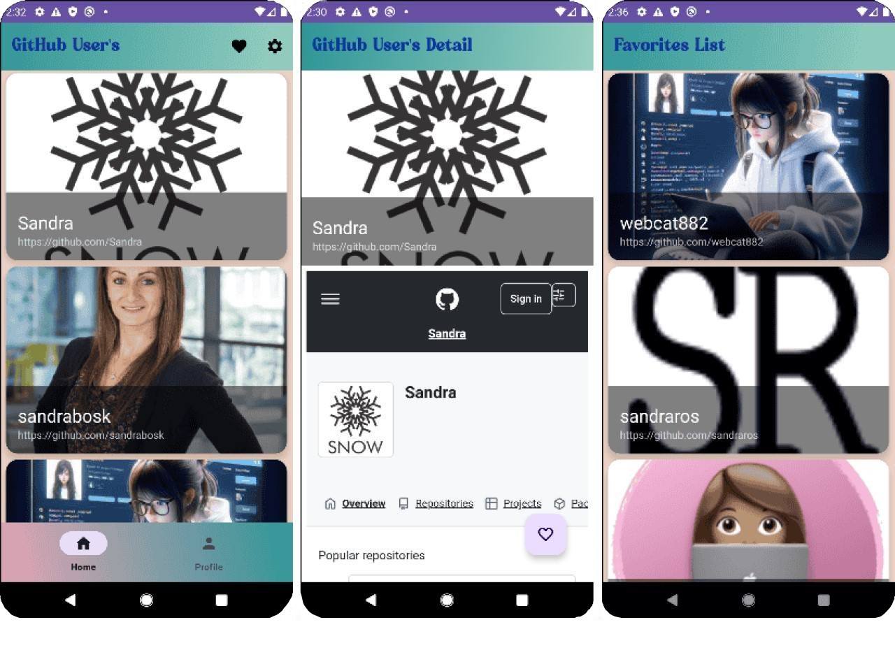 Aplikasi Android yang menampilkan data pengguna Github dari sumber daya GithubAPI.