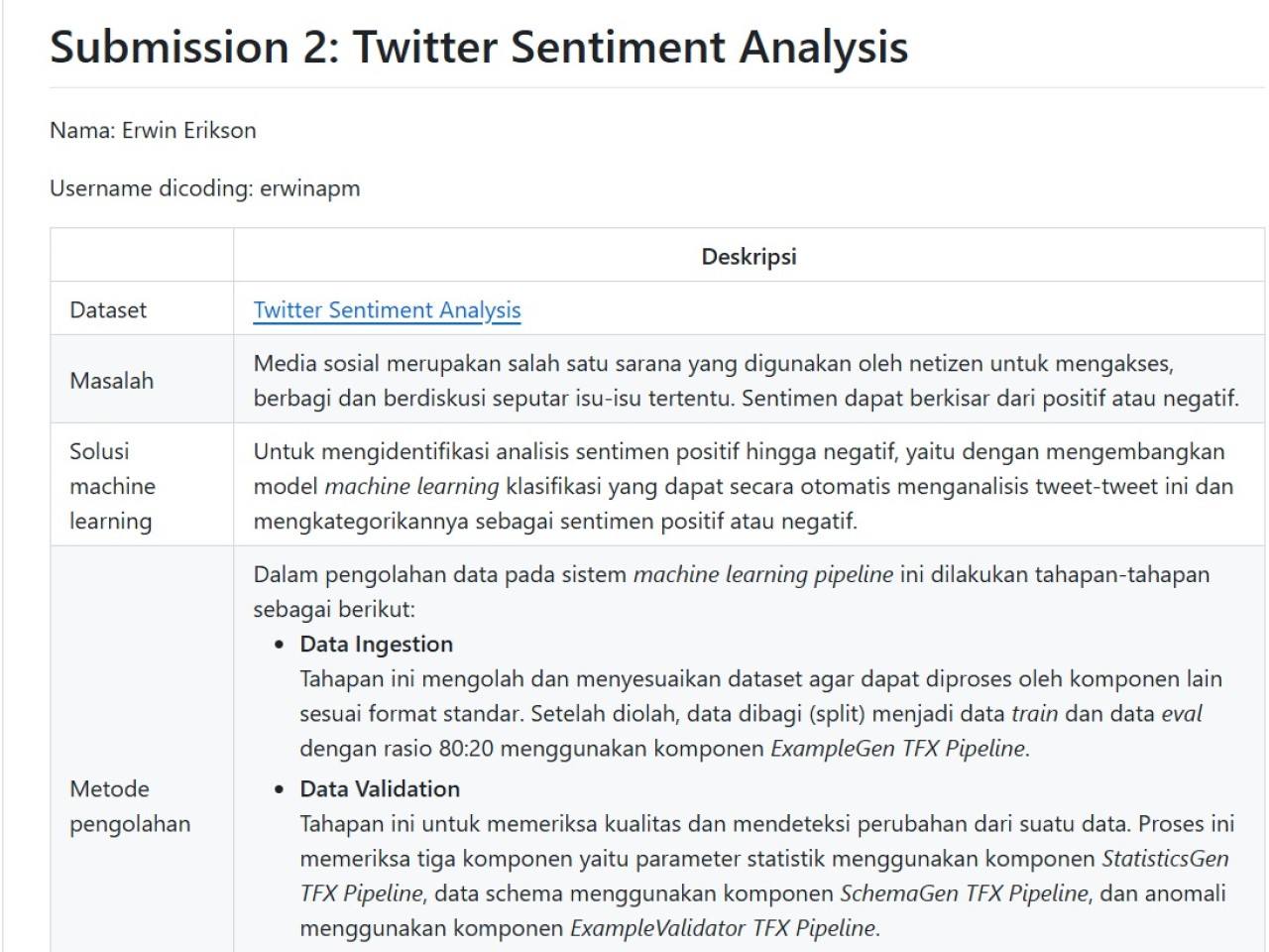 Pengembangan model machine learning untuk analisis sentimen tweet positif atau negatif.