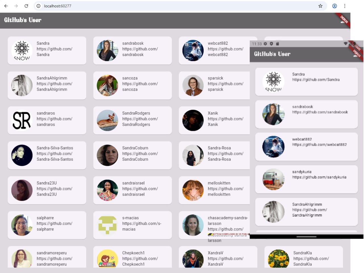 Aplikasi Flutter yang menampilkan data pengguna Github dari sumber daya GithubAPI.